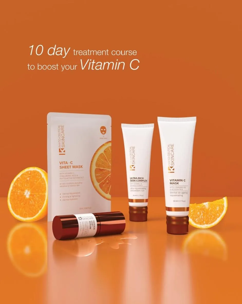 Basert på naturlig organisk utvunnet vitamin C , arbeider denne behandlingen for å øke collagen og elastin regenerering , som resulterer i synlig fastere og strammere hud.
